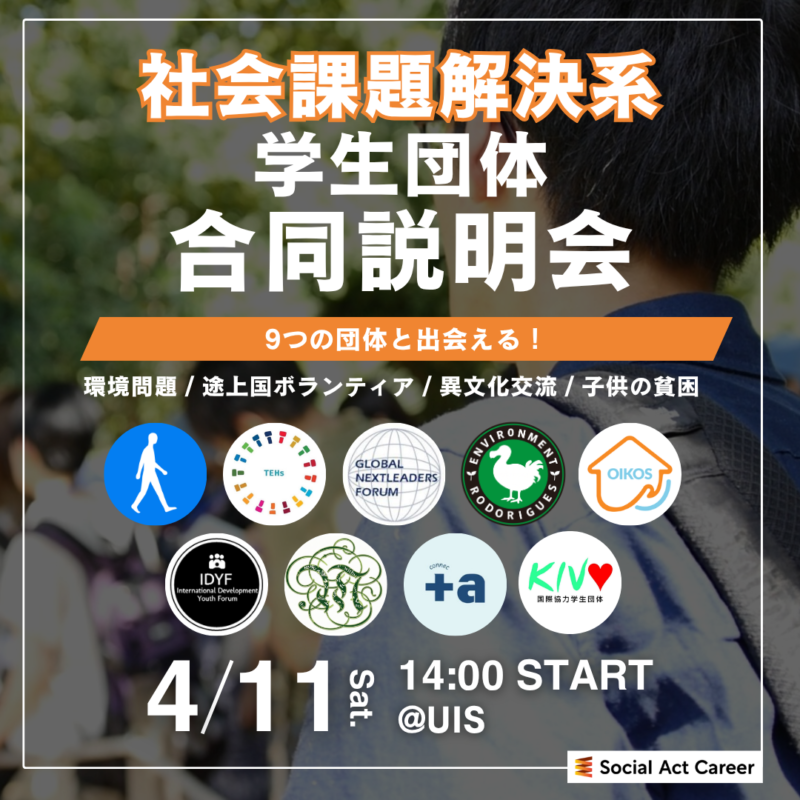 社会課題解決系サークル合同説明会 開催決定!9団体が参加!