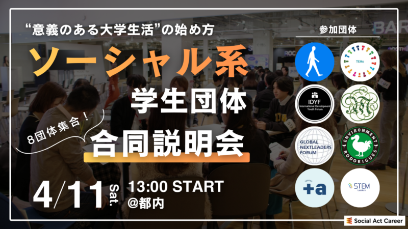 【8団体のソーシャル系学生団体が新しいメンバーを募集中!新しい挑戦の一歩となる場所を選ぼう!】