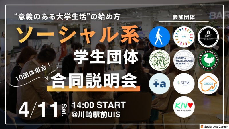【10団体のソーシャル系学生団体が新しいメンバーを募集中!新しい挑戦の一歩となる場所を選ぼう!】